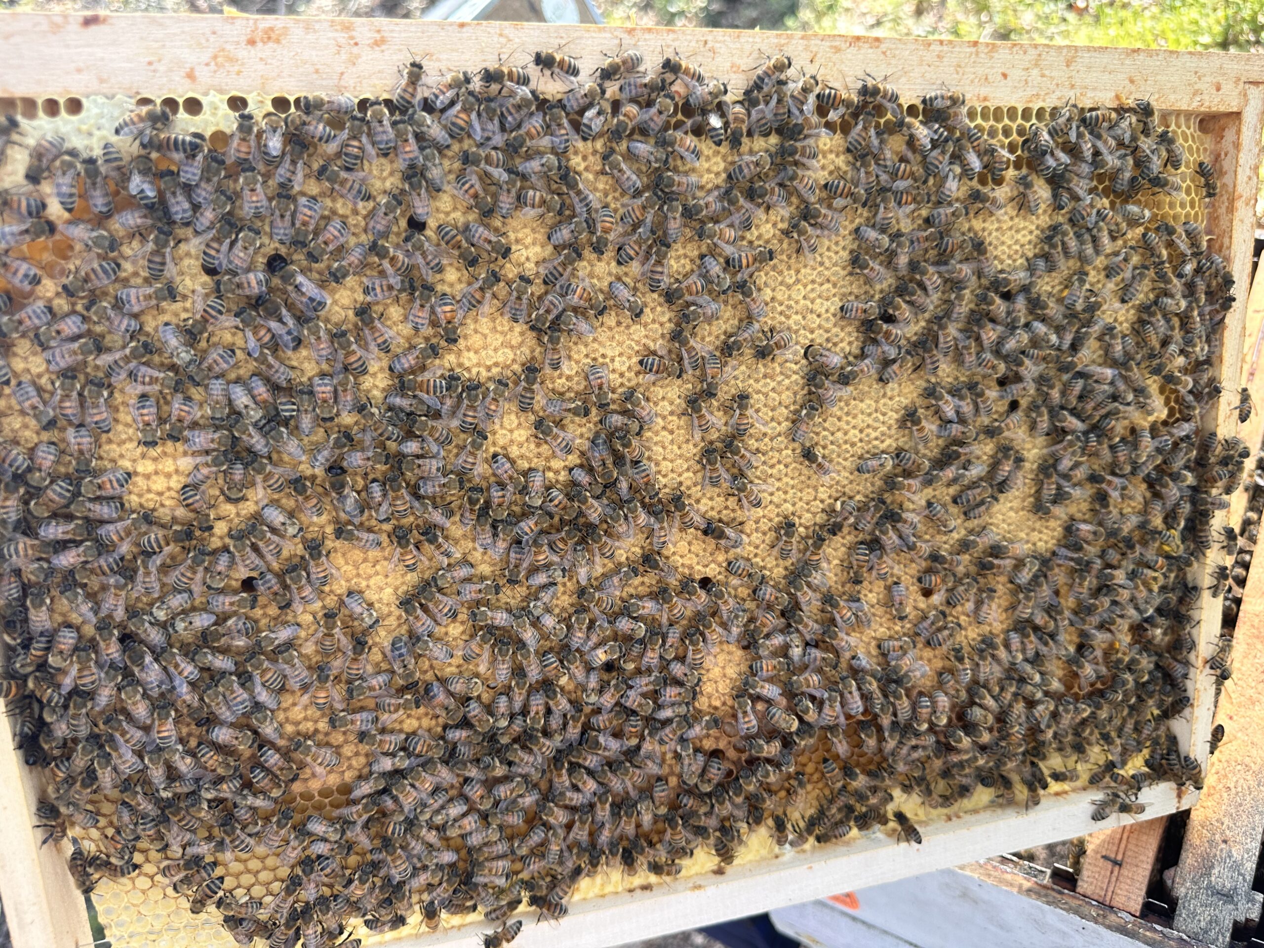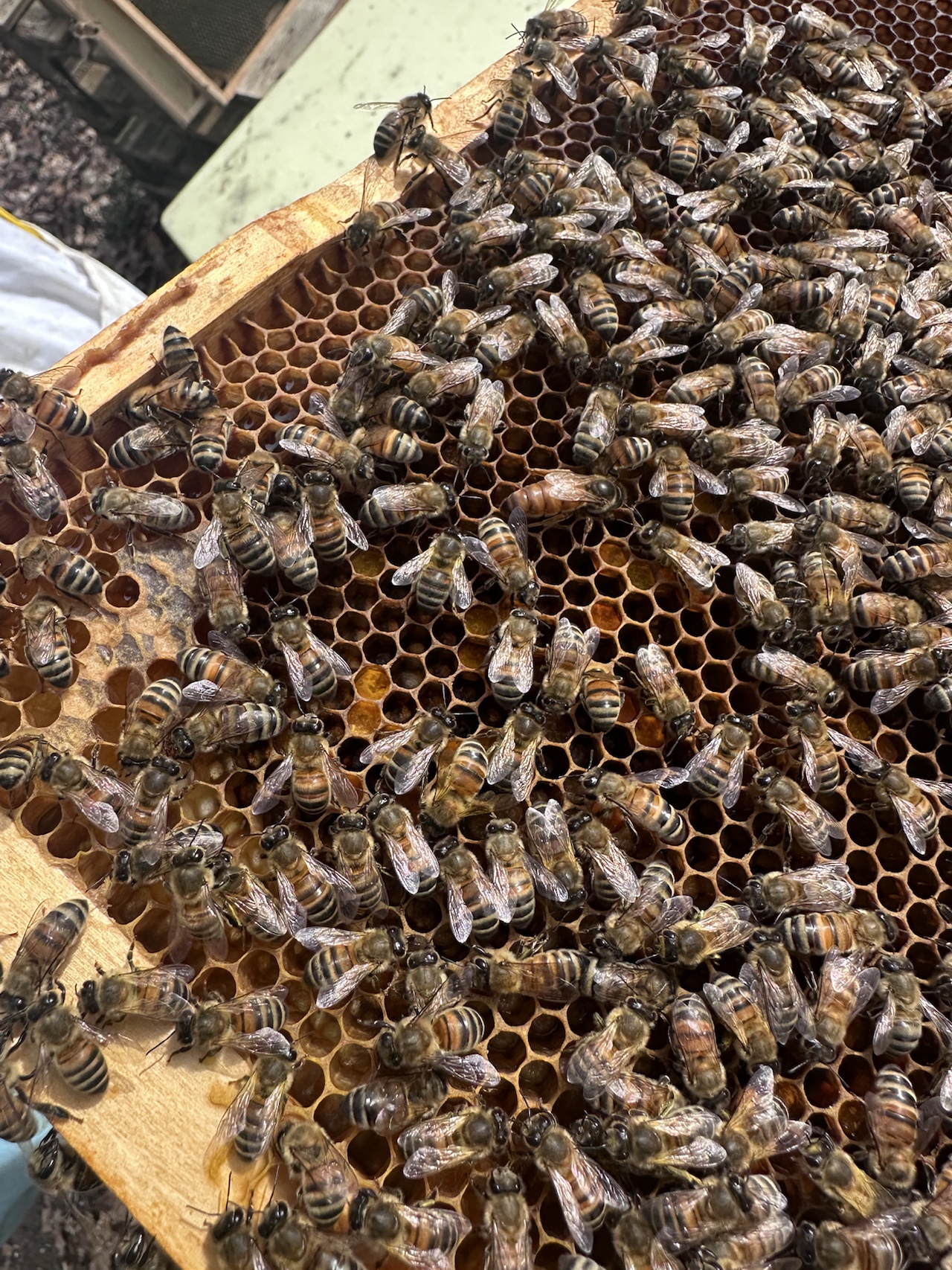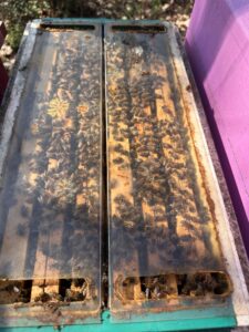 Nos essaims sont fournis sur 5 cadres Dadant, accompagnés d’un cadres non étirés, afin de limiter les risques d’essaimage et de surchauffe durant le transport.